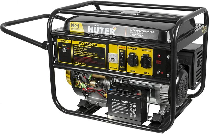 При необходимости, модель Huter DY6500LX может комплектоваться специальными ручками и колесами для удобства перемещения. Это важная особенность, так как общий вес прибора в снаряженном состоянии составляет около 95 кг.