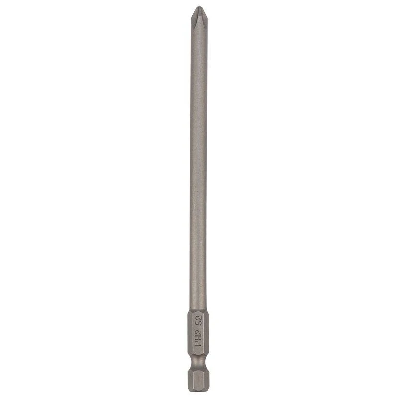 Изготовлена из легированной высокопрочной стали S2, что дает повышенную устойчивость к изломам и деформации в наиболее нагружаемых точках касания. Длина стержня позволяет достать до шлицев в труднодоступных местах. Размер наконечника PH2 подходит для работы со шлицами с резьбовым диаметром 3,1 – 5 мм. Намагниченный наконечник облегчает крепление и фиксацию крепежа на бите. Шестигранный хвостовик надежно фиксирует биту в патроне инструмента и не дает ей проворачиваться.