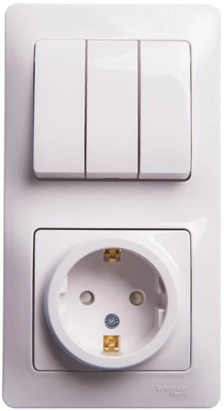 - Трёхклавишный выключатель позволяет управлять тремя источниками света из одной точки.