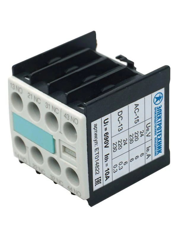 —ET014822 | Блок-контакт 3RH1911-1FA40 4п 4НО IP20 для контакторов типоразмера S00 фронтальный винтовые клеммы Электротехник