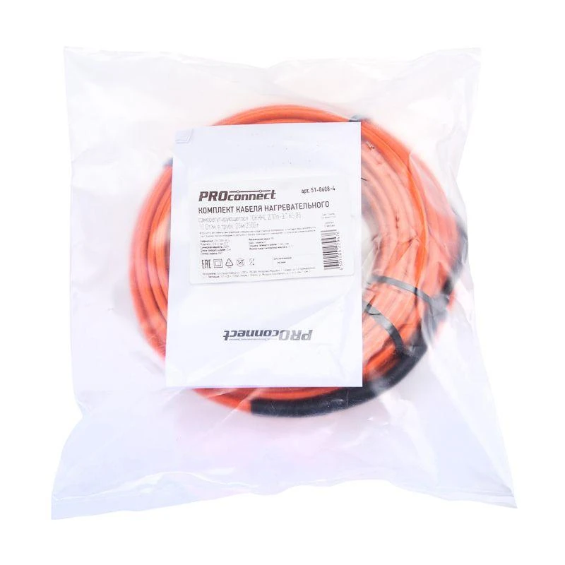 Нагревательный (греющий) кабель соединен с питающим силовым кабелем, на конце которого находится евровилка для подключения к розетке 230 В. При температуре окружающей среды или предметов выше 0 °C максимальная температура нагрева кабеля не превышает 65 °C.