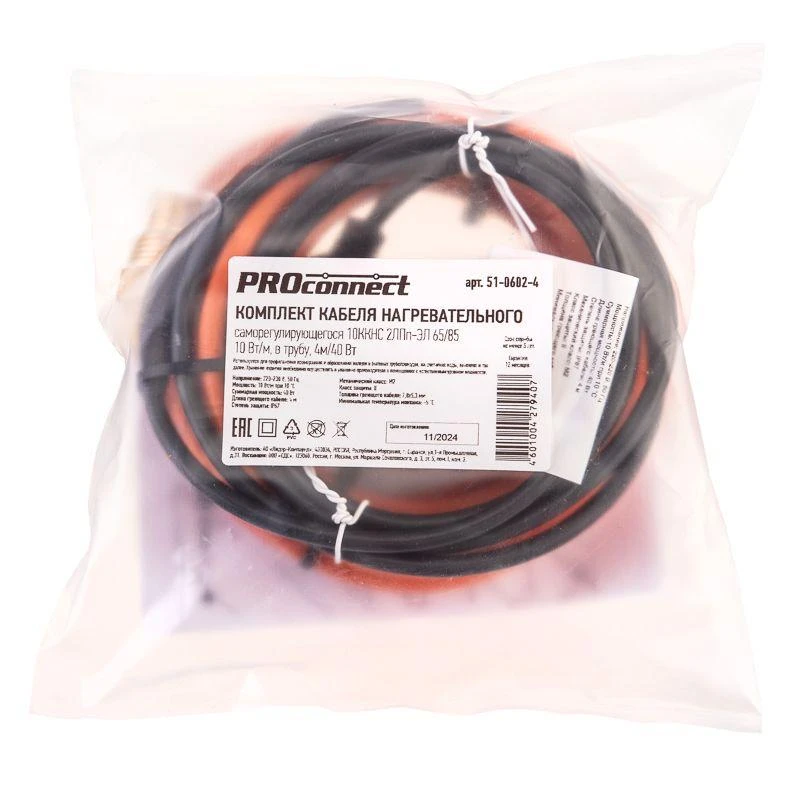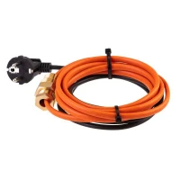 Нагревательный (греющий) кабель соединен с питающим силовым кабелем, на конце которого находится евровилка для подключения к розетке 230 В. При температуре окружающей среды или предметов выше 0 °C максимальная температура нагрева кабеля не превышает 65 °C.