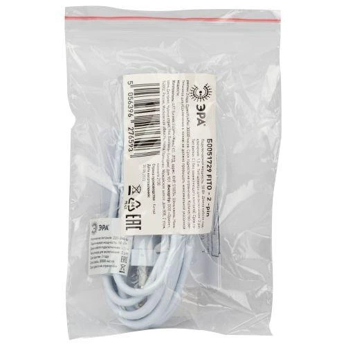 <td style="height:15.0pt; vertical-align:bottom; white-space:nowrap; width:142pt">Двужильный кабель длиной 1,5 м для подключения линейных светильников серии FITO Т5-N и Т5-Ra90. Кабель 2х05 мм2, тип кабеля ПВС. Двойной штекер на вилку.</td>