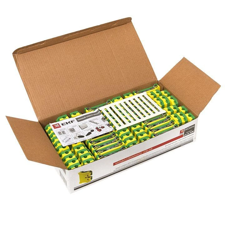 Клемная колодка состоит из 12 парных зажимов и легко режется на блоки с меньшим числом клеммных пар. Подключение электрических проводников осуществляется при помощи прижатия проводов винтами из оцинкованной стали. Материал корпуса колодки – белый или черный пластичный полиэтилен. Материал металлической планки – латунь.