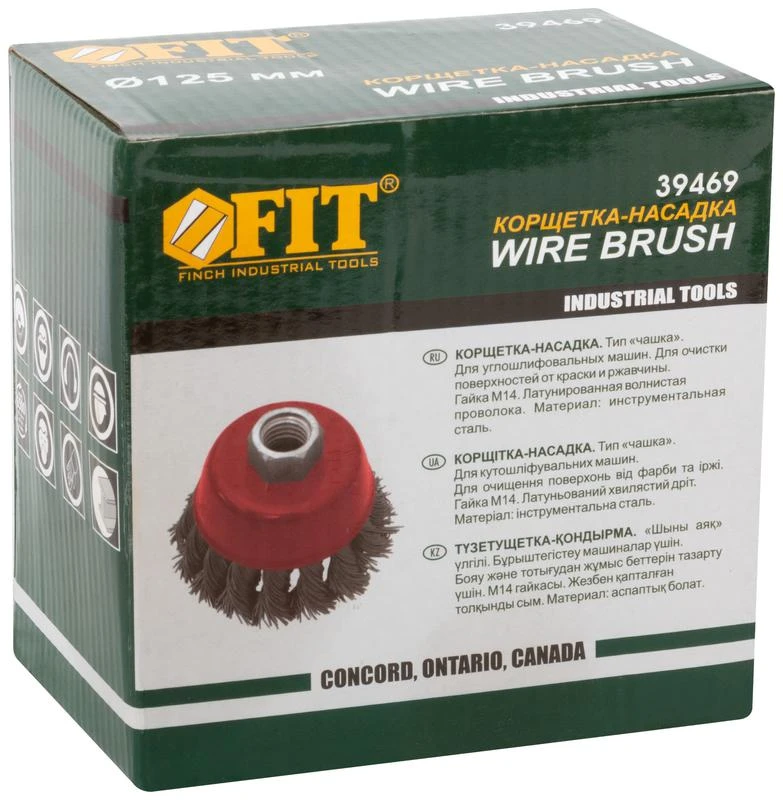 —39469 | Корщетка-чашка гайка М14 стальная витая проволока 125мм FIT
