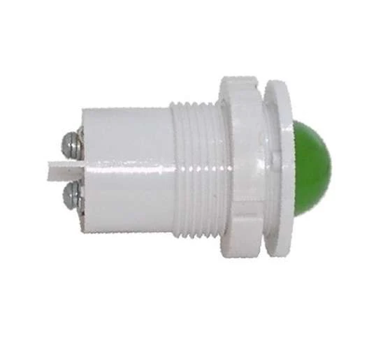 Представляет собой индикаторную лампу повышенной яркости (36 МКД), со встроенным светодиодом, высокой круглой, рассеивающей свет, окрашенной линзой зеленого цвета, корпусом и кольцом из пластика. IP54. Биполярная (переменный ток произвольной частоты и формы или постоянный ток любого направления).