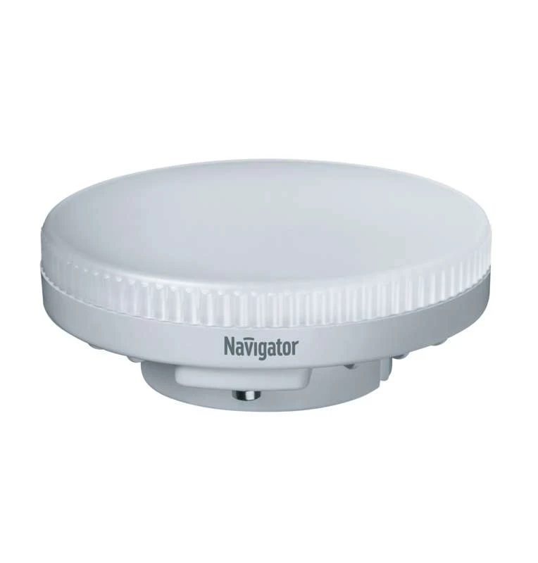 4670004713624 – лампа теплого белого света, с плоской колбой,"таблетка", диаметром 75 мм, высотой 27 мм, цоколем GX53, мощностью 8 Вт. Цветовая температура 2700 К.