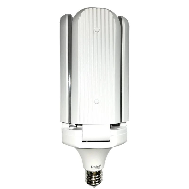 Состоит лампа для растений Uniel из 4 лепестков с углом рассеивания 180?, обеспечивая равномерное и интенсивное освещение большой площади. Лепестки можно фиксировать в 3-х различных положениях и фокусировать световой поток в нужном направлении.