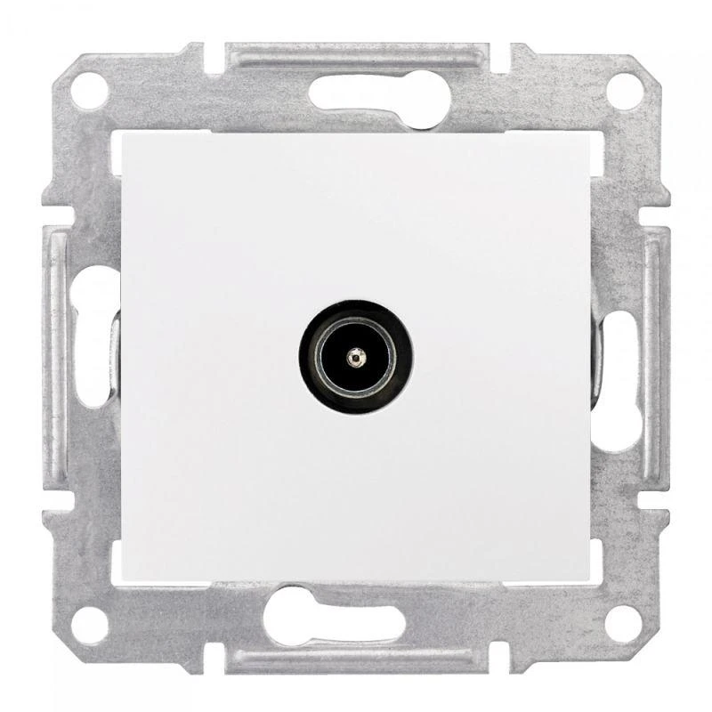 Представляет собой одноместный модуль ТV-розетки с одинарным разъемом для подключения. Изготовлен из пластика, белого цвета. Кабель монтируется путем введения штекера в паз.