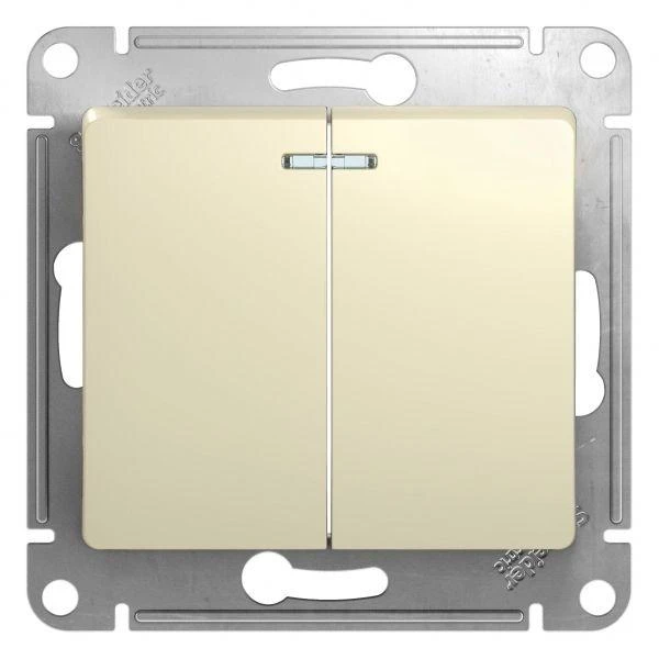 - Двухклавишный выключатель позволяет управлять двумя источниками света с одной точки.