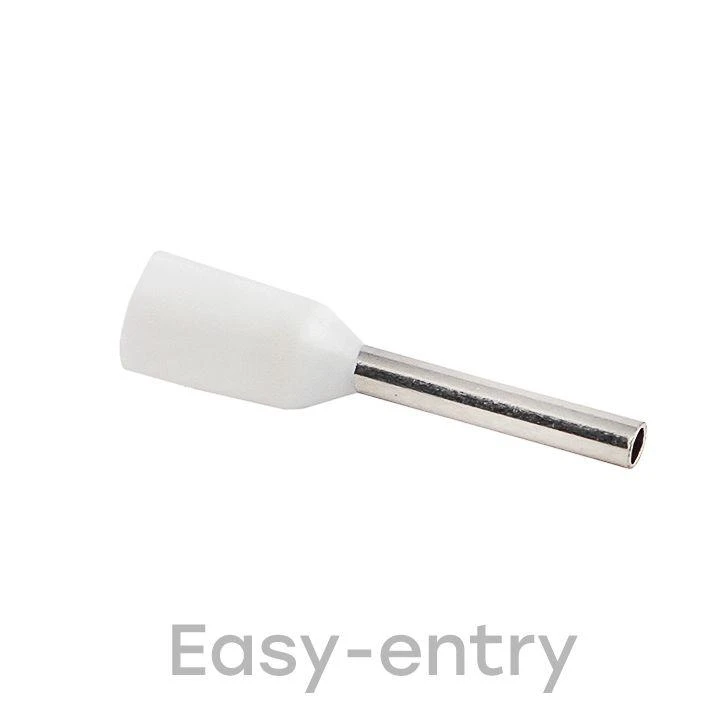Опрессовку наконечников проводят припомощи пресс-клещей. Заведите предварительно зачищенные концы провода в наконечник. Втулочный наконечник опрессуйте поверх металлической втулки, штыревой поверх изолированной ПВХ-манжеты. Выступающую из наконечника часть зачищенной жилы можно обрезать после завершения опрессовки. Перед тем как подсоединять опрессованный наконечник к клемме, проверьте, что его изоляция не нарушена, а жила надежно зафиксирована (провод не двигается внутри наконечника).