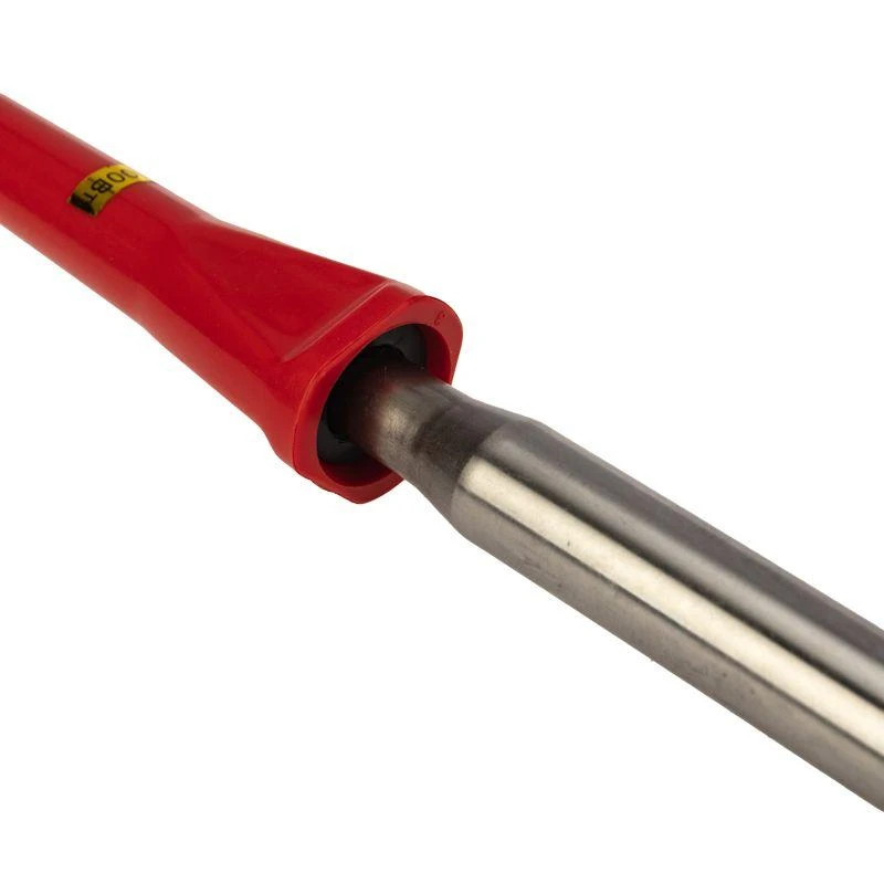 Паяльник выполнен с керамическим нагревательным элементом, поэтому нагревается быстрее. чем нихромовый и при бережном отношении прослужит много долгих лет. Долговечное жало паяльника состоит из медного сердечника, покрытого слоем электролитически осажденного железа. Рабочая часть жала электрохимически покрыта слоем олова (что обеспечивает облуживаемость), а остальная поверхность — хромирована.