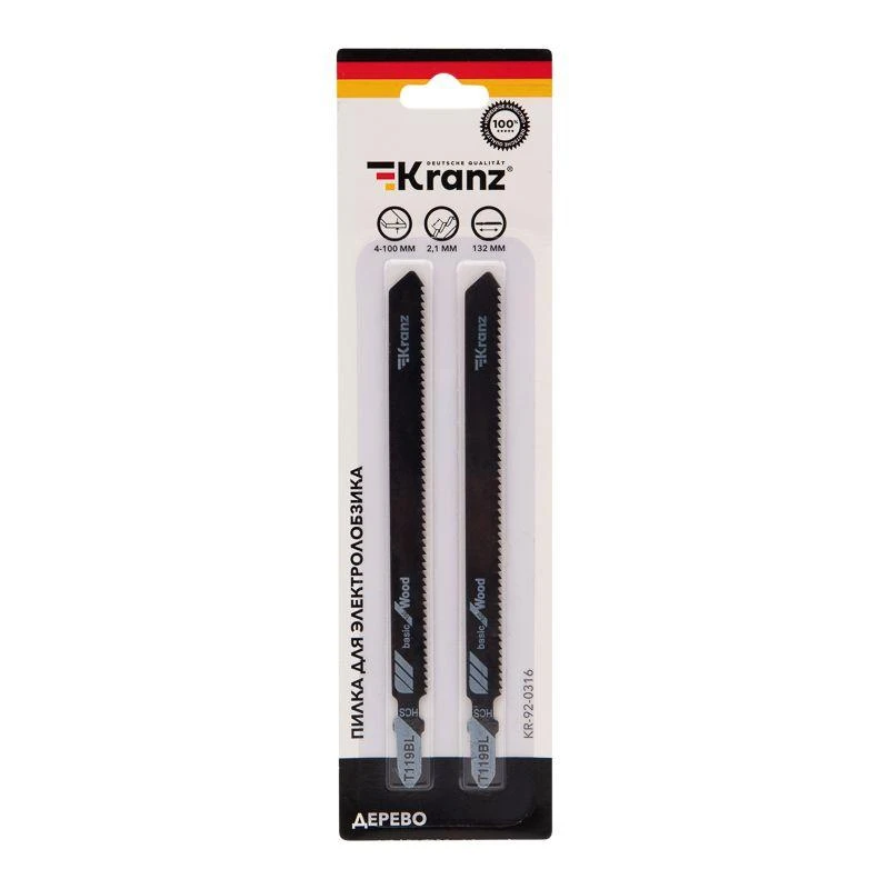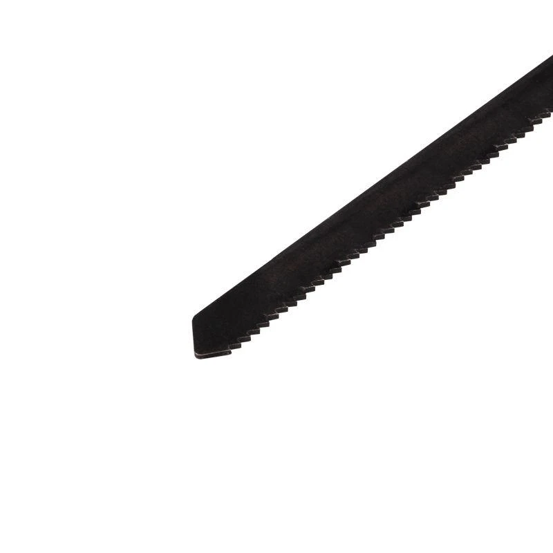 Полотно пилки выполнено из высокоуглеродистой стали, поэтому отличается прочностью и долговечностью. Режущая кромка состоит из зубьев с шагом 2,1 мм и рассчитана на получение чистого реза. Улучшенная закалка токами высокой частоты увеличивает твердость зубьев и обеспечивает высокий ресурс. Универсальный Т-образный хвостовик подходит для установки на большинство моделей электролобзиков.