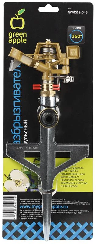 Импульсный разбрызгиватель GREEN APPLE предназначен для равномерного кругового полива земельных участков и оранжерей.