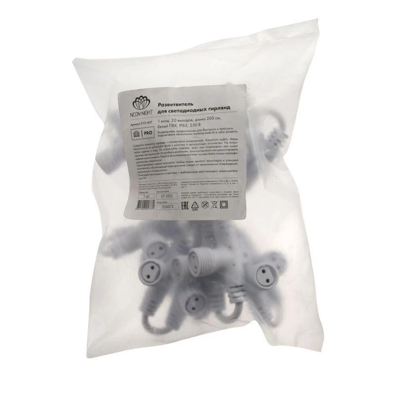 —315-407 | Разветвитель-шина для уличных гирлянд Professional (1 вход 20 выходов) бел. ПВХ Neon-Night