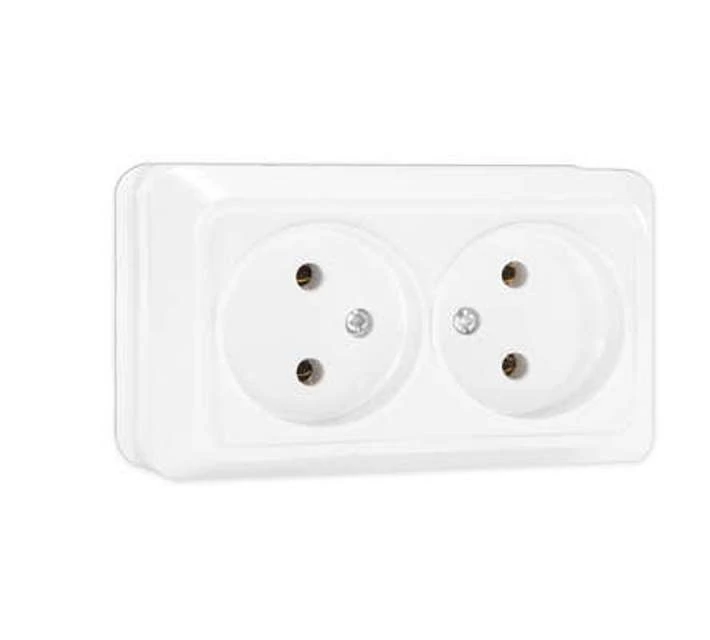 Корпус представляет собой форму из пластика, шириной 105 мм, белого цвета. Контактная группа изделий изготовлена из латуни.