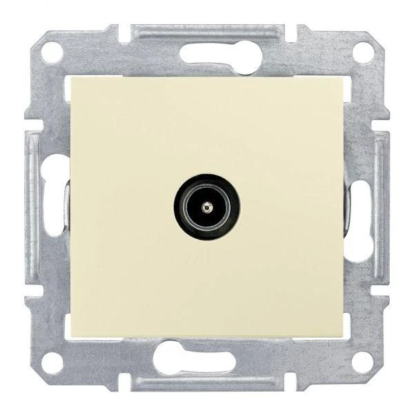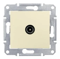 Представляет собой одноместный модуль ТV-розетки с одинарным разъемом для подключения. Изготовлен из пластика, бежевого цвета. Кабель монтируется путем введения штекера в паз.