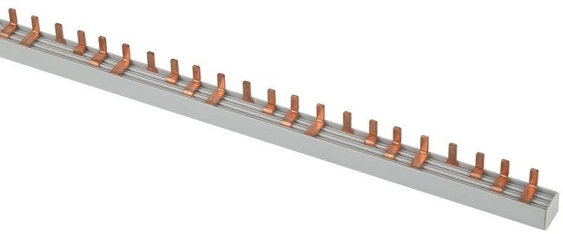 - На контактных частях шины выполнены насечки, которые обеспечивают надёжную фиксацию в корпусе модульного аппарата.