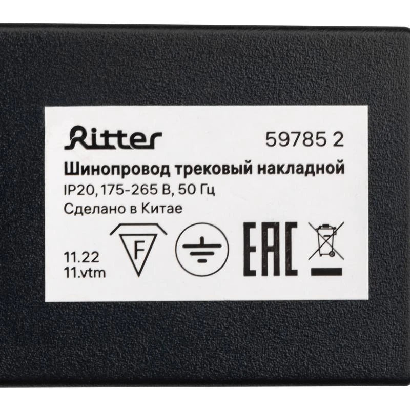 —59785 2 | Шинопровод трековый накладной 1ф ARTLINE с питанием и заглушкой 1м алюм./медь с держателями с пластиковой планкой черн. Ritter