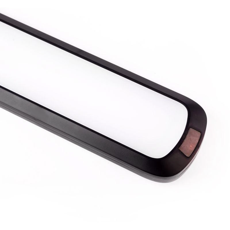 Стойка и мощное устойчивое основание торшера (диаметром 26 см) изготовлены из металла, верхняя гибкая часть стойки имеет силиконовое покрытие. Плафон имеет прямоугольную форму 30 см х 8 см. Высота торшера в рабочем положении составляет 150 см. Длина провода питания – 150 см.Сетевой адаптер совмещен с электровилкой."