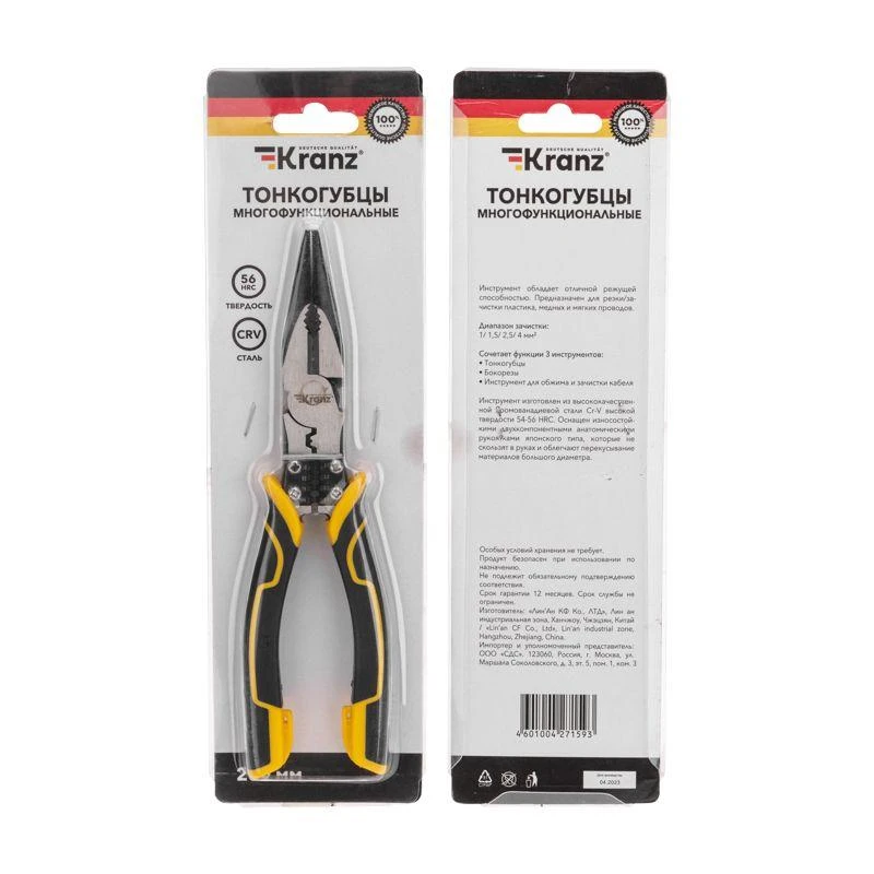 Плоскогубцы изготовлены из высококачественной хромованадиевой стали (Cr-V). Оснащены износостойкими двухкомпонентными анатомическими рукоятками, которые не скользят в руках. Тип рукояток – японский.