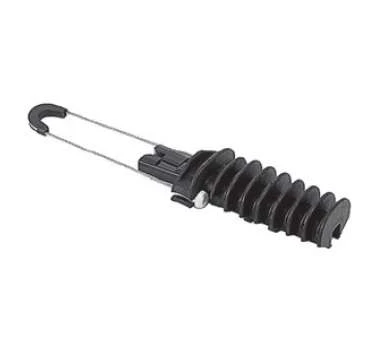 Зажим анкерный клиновой обеспечивает фиксацию проводника путем срабатывания простого призматического механизма, рабочие поверхности которого сходятся под острым углом. На опоре ЛЭП зажим фиксируется с помощью тросика.